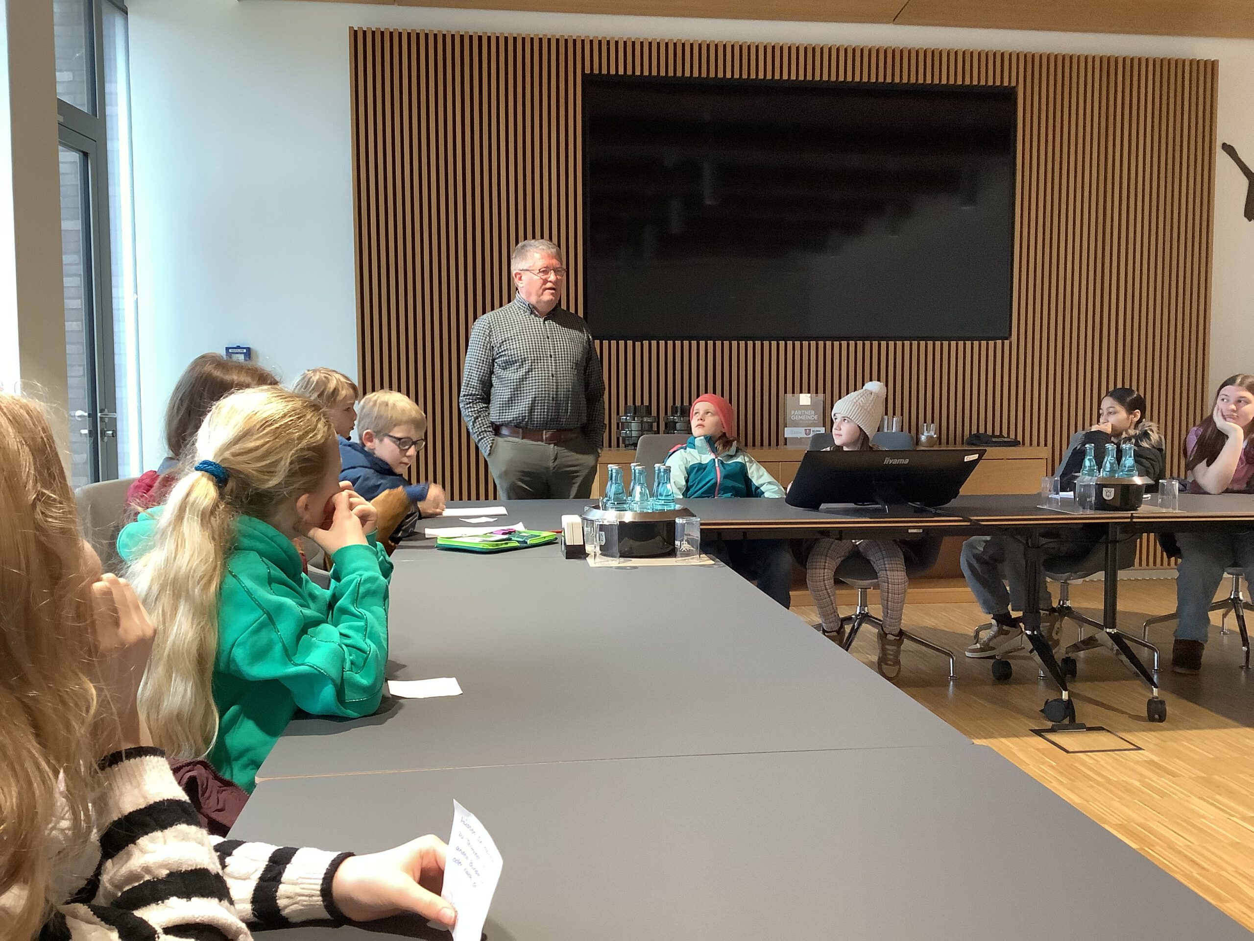 Empfangen wurden die Klassen von Ludger Grafe, dem allgemeinen Stellvertreter des Bürgermeisters. Er nahm sich viel Zeit, führte die Schülerinnen und Schüler durch das Rathaus, erklärte anschaulich die Aufgaben der Gemeindeverwaltung und beantwortete geduldig die zahlreichen Fragen.